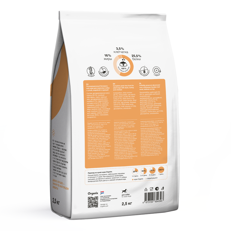 (на 1 кг) Витамин А (альфа ретинола ацетат) 18000 IU, витамин D3 (холекальциферол) 1800 IU, витамин Е (альфа токоферола ацетат) 500 IU, медь (сульфат меди(II) пентагидрат) 10 мг, медь (медный хелат глицина, гидрат) 5 мг, цинк (сульфат цинка моногидрат) 100 мг, цинк (цинковый хелат глицина, гидрат) 50 мг, железо (сульфат железа моногидрат) 70 мг, железо (железо (II), хелат глицина, гидрат) 35 мг, марганец (оксид марганца(II)) 50 мг, марганец (марганец (II), хелат глицина, гидрат) 25 мг, йод (йодат кальция) 2 мг, селен (селенит натрия) 0, 1 мг, таурин 1000 мг, L-карнитин 50 мг.