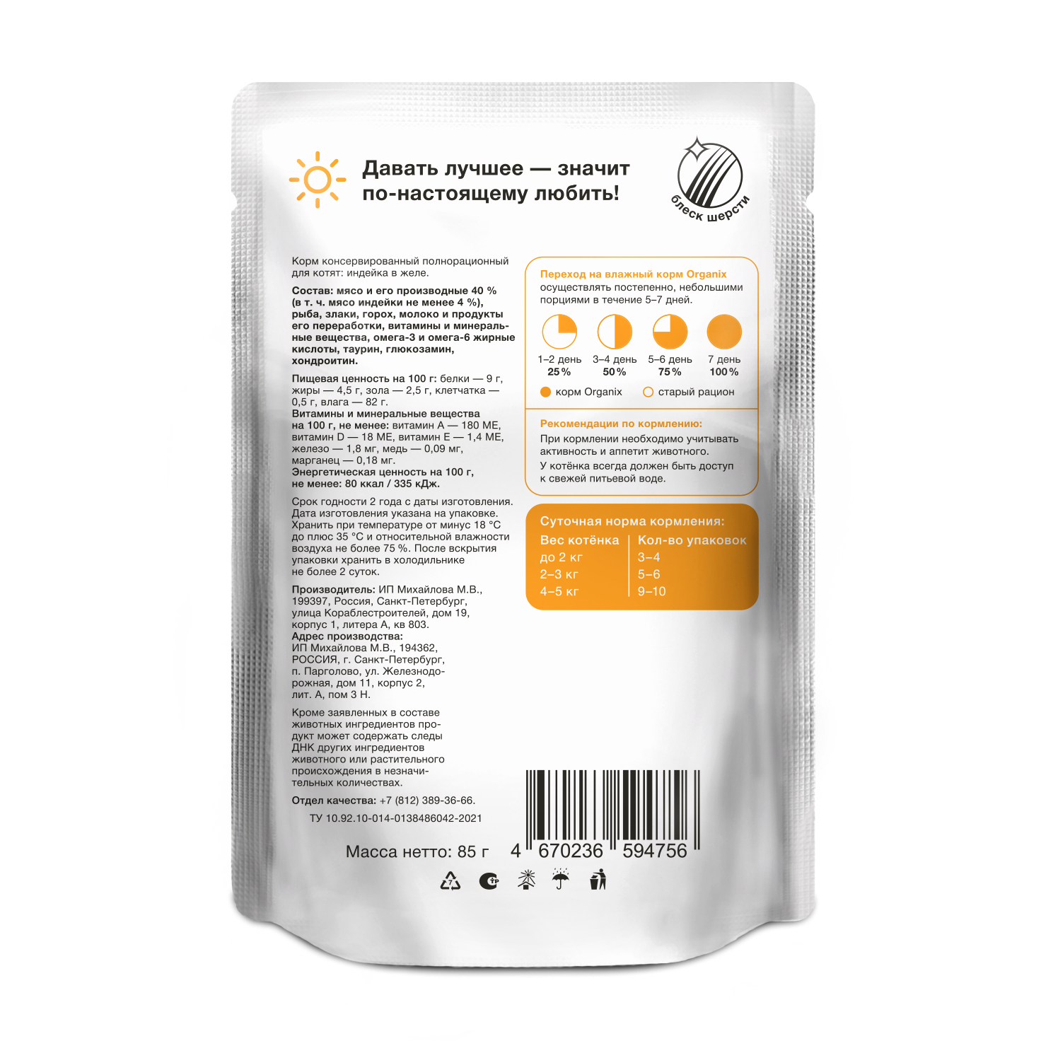 Паучи для котят индейка в желе