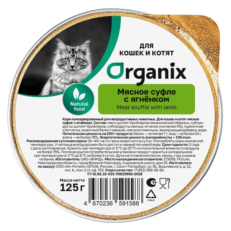 Фарш куриный, субпродукты куриные, субпродукты свиные, ягненок (не менее 4%), клетчатка, животный белок, мясокостная мука, желирующая добавка, вода
