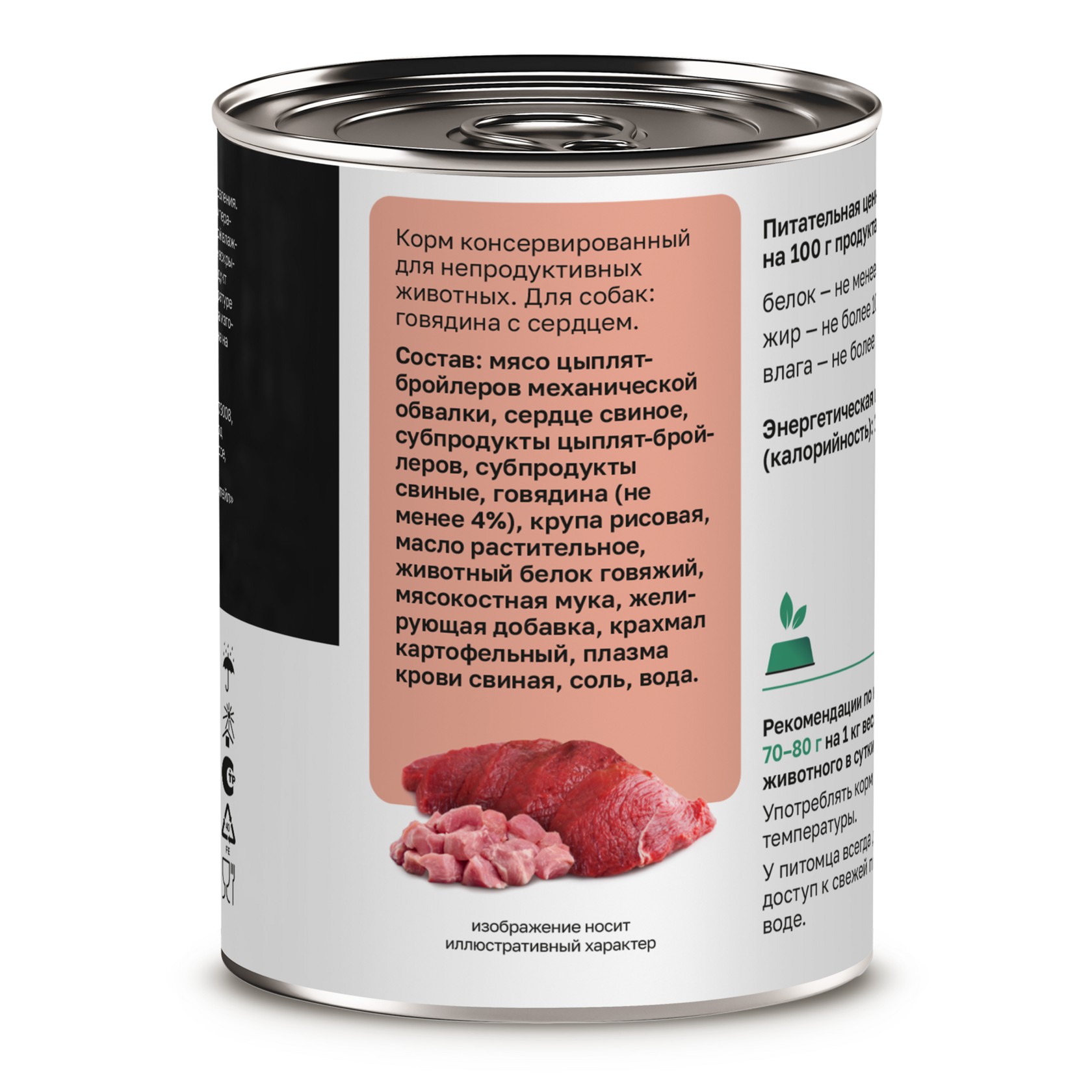 Влажный корм полностью адаптирован под потребности в питании собак. Приготовлен из натуральных продуктов и является хорошим источником животного белка.
