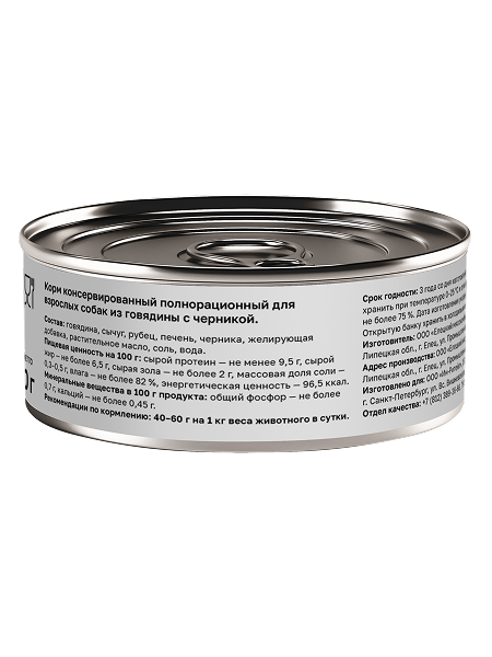 говядина, сычуг, рубец, печень, черника, желирующая добавка, растительное масло, соль, вода.