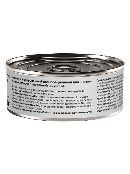 Говядина, сердце, рубец, печень, цукини, желирующая добавка, растительное масло, соль, вода.