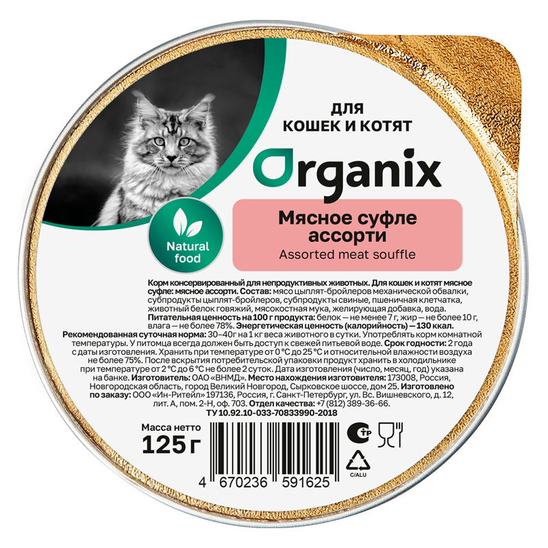 Фарш куриный, субпродукты куриные, субпродукты свиные, клетчатка, животный белок, мясокостная мука, желирующая добавка, вода